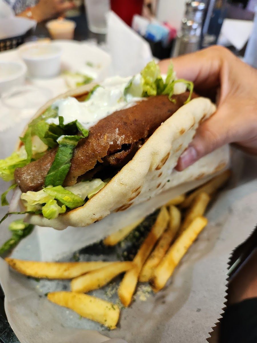 One of the standout items on the menu is the Greek Salad, a vibrant mix of crisp cucumbers, juicy tomatoes, Kalamata olives, red onions, and feta cheese, all drizzled with olive oil and oregano. It’s the perfect starter for anyone looking to dive into the flavors of the Mediterranean. For those craving something heartier, the Lamb Souvlaki is a must-try. Marinated in a blend of garlic, lemon, and fresh herbs, the tender lamb is grilled to perfection and served with warm pita bread and a side of tangy tzatziki sauce. It’s the perfect combination of savory, smoky, and fresh.
